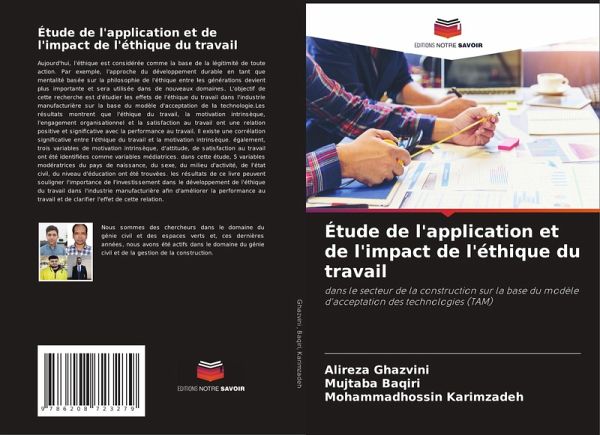 Aujourd'hui, l'éthique est considérée comme la base de la légitimité de toute action. Par exemple, l'approche du développement durable en tant que mentalité basée sur la philosophie de l'éthique entre les générations devient plus importante et sera utilisée dans de nouveaux domaines. L'objectif de cette recherche est d'étudier les effets de l'éthique du travail dans l'industrie manufacturière sur la base du modèle d'acceptation de la technologie.Les résultats montrent que l'éthique du travail, la motivation intrinsèque, l'engagement organisationnel et la satisfaction au travail ont une relation positive et significative avec la performance au travail. Il existe une corrélation significative entre l'éthique du travail et la motivation intrinsèque. également, trois variables de motivation intrinsèque, d'attitude, de satisfaction au travail ont été identifiées comme variables médiatrices. dans cette étude, 5 variables modératrices du pays de naissance, du sexe, du milieu d'activité, de l'état civil, du niveau d'éducation ont été trouvées. les résultats de ce livre peuvent souligner l'importance de l'investissement dans le développement de l'éthique du travail dans l'industrie manufacturière afin d'améliorer la performance au travail et de clarifier l'effet de cette relation.