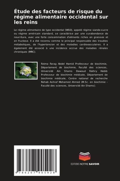 Le régime alimentaire de type occidental (WSD), appelé régime viande-sucre ou régime américain standard, se caractérise par une surabondance de nourriture, avec une forte consommation d'aliments riches en graisses et en fructose. Il a été reconnu comme le principal responsable des troubles métaboliques, de l'hypertension et des maladies cardiovasculaires. Il a également été associé à une incidence accrue des maladies rénales chroniques (MRC).