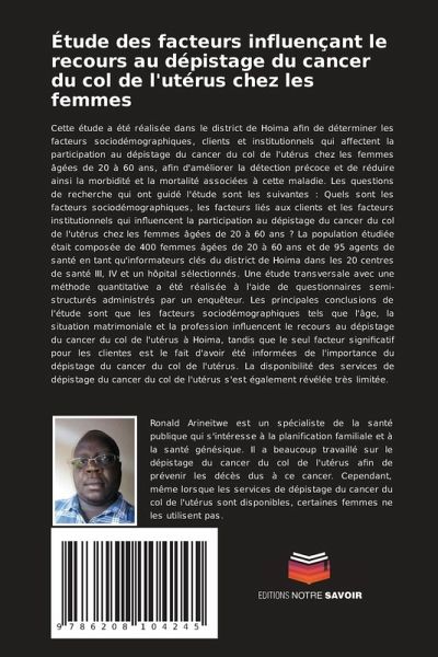 Cette étude a été réalisée dans le district de Hoima afin de déterminer les facteurs sociodémographiques, clients et institutionnels qui affectent la participation au dépistage du cancer du col de l'utérus chez les femmes âgées de 20 à 60 ans, afin d'améliorer la détection précoce et de réduire ainsi la morbidité et la mortalité associées à cette maladie. Les questions de recherche qui ont guidé l'étude sont les suivantes : Quels sont les facteurs sociodémographiques, les facteurs liés aux clients et les facteurs institutionnels qui influencent la participation au dépistage du cancer du col de l'utérus chez les femmes âgées de 20 à 60 ans ? La population étudiée était composée de 400 femmes âgées de 20 à 60 ans et de 95 agents de santé en tant qu'informateurs clés du district de Hoima dans les 20 centres de santé III, IV et un hôpital sélectionnés. Une étude transversale avec une méthode quantitative a été réalisée à l'aide de questionnaires semi-structurés administrés par un enquêteur. Les principales conclusions de l'étude sont que les facteurs sociodémographiques tels que l'âge, la situation matrimoniale et la profession influencent le recours au dépistage du cancer du col de l'utérus à Hoima, tandis que le seul facteur significatif pour les clientes est le fait d'avoir été informées de l'importance du dépistage du cancer du col de l'utérus. La disponibilité des services de dépistage du cancer du col de l'utérus s'est également révélée très limitée.