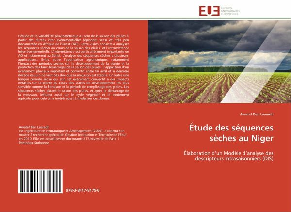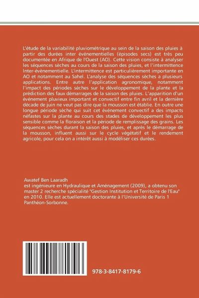 L'étude de la variabilité pluviométrique au sein de la saison des pluies à partir des durées inter événementielles (épisodes secs) est très peu documentée en Afrique de l'Ouest (AO). Cette vision consiste à analyser les séquences sèches au cours de la saison des pluies, et l'intermittence Inter-évènementielle. L'intermittence est particulièrement importante en AO et notamment au Sahel. L'analyse des séquences sèches a plusieurs applications. Entre autre l'application agronomique, notamment l'impact des périodes sèches sur le développement de la plante et la prédiction des faux démarrages de la saison des pluies. L'apparition d'un événement pluvieux important et convectif entre fin avril et la dernière décade de juin ne veut pas dire que la mousson est établie. En outre une longue période sèche qui suit cet événement convectif a des impacts néfastes sur la plante au cours des stades de développement les plus sensible comme la floraison et la période de remplissage des grains. Les séquences sèches durant la saison des pluies, et après le démarrage de la mousson, influent aussi sur le cycle végétatif et le rendement agricole, pour cela on a intérêt aussi à modéliser ces durées.