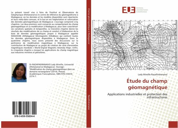 Le présent travail vise à faire de l'Institut et Observatoire de Géophysique d'Antananarivo le centre de référence du géomagnétisme à Madagascar, où les données et les modèles disponibles sont répertoriés et leurs méta-data connues, et le but en est l'exploitation et valorisation des données géomagnétiques de Madagascar. L'ouvrage comprend cinq chapitres. Les deux premiers sont consacrés au comportement du champ géomagnétique et sa modélisation à Madagascar, pour bien caractériser ses variations spatiales et temporelles. Le troisième chapitre donne les résultats des modélisations de ce champ et conduit à l'élaboration de la base de données géomagnétiques propre à Madagascar appelée MAGEDAB "MAdagascar GEomagnetic DAtaBase" qui contient toutes les données géomagnétiques disponibles à Madagascar. Dans le quatrième chapitre, nous avons présenté des discussions sur la pertinence de modélisation magnétique à Madagascar, sur la contribution de Madagascar au projet de création de carte d'anomalies magnétiques mondiale " World Digital Magnetic Anomaly Map". Enfin, le cinquième chapitre a évoqué les applications du champ magnétique aux industries minières et pétrolières.
