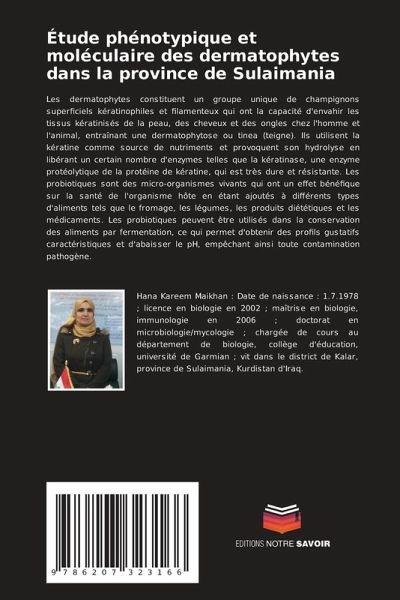 Les dermatophytes constituent un groupe unique de champignons superficiels kératinophiles et filamenteux qui ont la capacité d'envahir les tissus kératinisés de la peau, des cheveux et des ongles chez l'homme et l'animal, entraînant une dermatophytose ou tinea (teigne). Ils utilisent la kératine comme source de nutriments et provoquent son hydrolyse en libérant un certain nombre d'enzymes telles que la kératinase, une enzyme protéolytique de la protéine de kératine, qui est très dure et résistante. Les probiotiques sont des micro-organismes vivants qui ont un effet bénéfique sur la santé de l'organisme hôte en étant ajoutés à différents types d'aliments tels que le fromage, les légumes, les produits diététiques et les médicaments. Les probiotiques peuvent être utilisés dans la conservation des aliments par fermentation, ce qui permet d'obtenir des profils gustatifs caractéristiques et d'abaisser le pH, empêchant ainsi toute contamination pathogène.