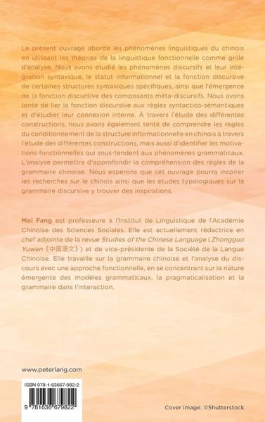 Cet ouvrage analyse les aspects discursifs du chinois à travers la linguistique fonctionnelle. Il explore la connexion interne entre la fonction discursive des structures syntaxiques spécifiques en chinois et les règles syntactico-sémantiques, tout en cherchant à identifier les motivations fonctionnelles des phénomènes grammaticaux.