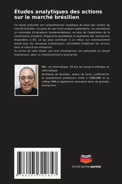 Ce travail présente une compréhension analytique de base des actions du marché brésilien, du point de vue d'une analyse exploratoire, en considérant un ensemble d'indicateurs fondamentalistes, en plus de l'application de la combinaison d'aspects d'approche quantitative et qualitative des entreprises disponibles à B3, ce qui peut contribuer à un retour sur investissement positif pour les nouveaux investisseurs, permettant d'atténuer les erreurs dans le choix d'une entreprise.Au terme de cette étude, une liste d'entreprises est présentée au nouvel investisseur, pour un investissement à long terme.