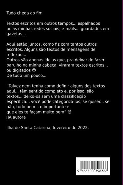 Tudo chega ao fim Textos escritos em outros tempos... espalhados pelas minhas redes sociais, e-mails... guardados em gavetas... Aqui est o juntos,