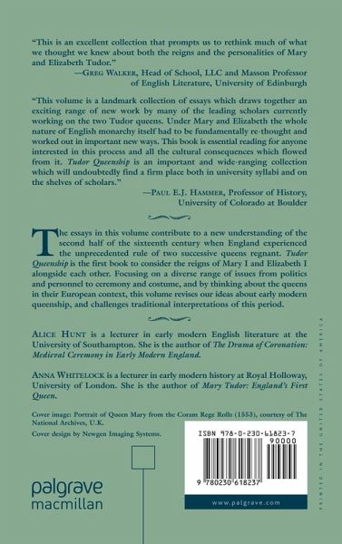 "This volume is a landmark collection of essays which draws together an exciting range of new work by many of the leading scholars currently working on the two Tudor queens. Under Mary and Elizabeth the whole nature of English monarchy itself had to be fundamentally re-thought and worked out in important new ways. This book is essential reading for anyone interested in this process and all the cultural consequences which flowed from it. Tudor Queenship is an important and wide-ranging collection which will undoubtedly find a firm place both in university syllabi and on the shelves of scholars." - Paul E.J. Hammer, Professor of History, University of Colorado at Boulder