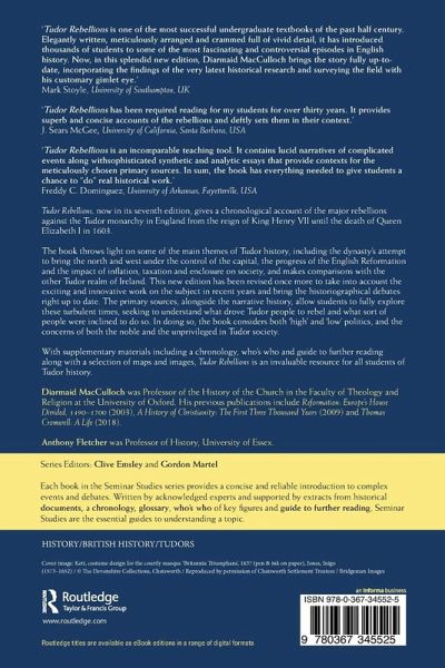 'Tudor Rebellions is one of the most successful undergraduate textbooks of the past half century. Elegantly written, meticulously arranged and crammed full of vivid detail, it has introduced thousands of students to some of the most fascinating and controversial episodes in English history. Now, in this splendid new edition, Diarmaid MacCulloch brings the story fully up-to-date, incorporating the findings of the very latest historical research and surveying the field with his customary gimlet eye.'