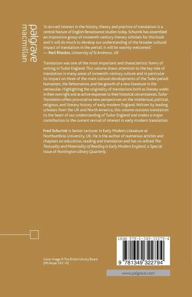 "Coherently organized and carefully edited, Tudor Translation achieves its double purpose of contextualizing translation and offering new insights on the literary activity of the period. It should be of interest to advanced students and scholars in the fields of translation studies, translation history, and the history of English literature." - Renaissance Quarterly