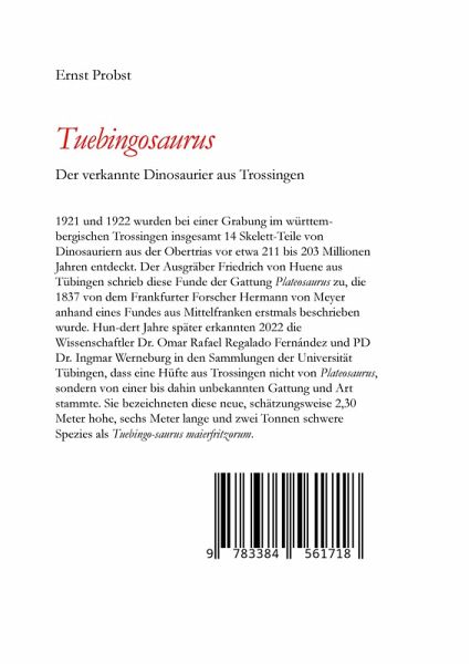 1921 und 1922 wurden bei einer Grabung im württembergischen Trossingen insgesamt 14 Skelett-Teile von Dinosauriern aus der Obertrias vor etwa 211 bis 203 Millionen Jahren entdeckt. Der Ausgräber Friedrich von Huene aus Tübingen schrieb diese Funde der Gattung Plateosaurus zu, die 1837 von dem Frankfurter Forscher Hermann von Meyer anhand eines Fundes aus Mittelfranken erstmals beschrieben wurde. Hundert Jahre später erkannten 2022 die Wissenschaftler Dr. Omar Rafael Regalado Fernández und PD Dr. Ingmar Werneburg in den Sammlungen der Universität Tübingen, dass eine Hüfte aus Trossingen nicht…mehr