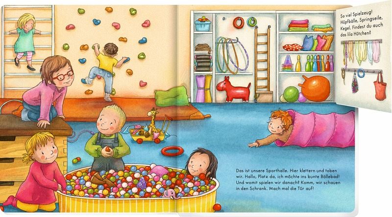 Ein Kindergartenbuch mit großen Klappen und vielen liebevollen Details.
