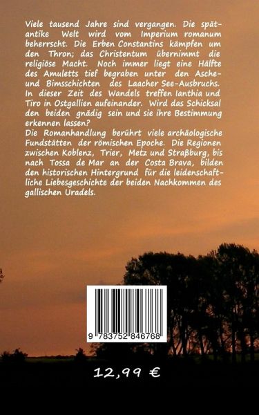 Viele tausend Jahre sind vergangen. Die spätantike Welt wird vom Imperium romanum beherrscht. Die Erben Constantins kämpfen um den Thron. Das Christentum übernimmt die religiöse Macht. In dieser Zeit des Wandels treffen Ianthia und Tiro in Ostgallien aufeinander. Wird das Schicksal den beiden gnädig sein und sie ihre Bestimmung erkennen lassen? Denn noch immer liegt Tomarus Hälfte des Amuletts tief begraben unter den Asche- und Bimsschichten des Laacher See-Ausbruchs und wartet darauf, dass sich der äonenalte Liebesschwur erfüllen kann.Der Roman berührt viele archäologische Fundstätten der römischen Epoche: Das römische Kastell von Boppard, den keltisch-römischen Bäderort Bad Bertrich, das römische Tuffbergwerg bei Kretz, die Weinberge und Kelteranlagen bei Ürzig an der Mosel, den gallisch-römischen Tempelbezirk Martberg oberhalb Pommern an der Mosel und das Merkurheiligtum auf dem Kühkopf bei Koblenz. Trier und Metz, als politische und wirtschaftliche Zentren und die Salzgewinnung im lothringischen Marsal spielen eine wichtige Rolle. Selbst das griechisch-römische Handels- und Militärzentrum Emporion und die römische Villa in Tossa de Mar an der Costa Brava bilden den Hintergrund für die leidenschaftliche Liebesgeschichte der beiden Nachkommen des gallischen Uradels.