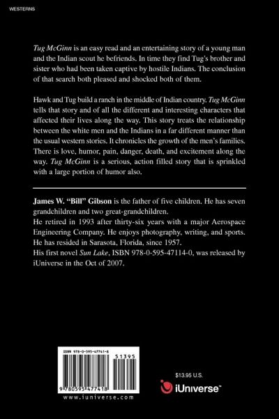 Tug McGinn is an easy read and an entertaining story of a young man and the Indian scout he befriends. In time they find Tug's brother and sister who had been taken captive by hostile Indians. The conclusion of that search both pleased and shocked both of them. Hawk and Tug build a ranch in the middle of Indian country. Tug McGinn tells that story and of all the different and interesting characters that affected their lives along the way. This story treats the relationship between the white men and the Indians in a far different manner than the usual western stories. It chronicles the growth of the men's families. There is love, humor, pain, danger, death, and excitement along the way. Tug McGinn is a serious, action filled story that is sprinkled with a large portion of humor also.
