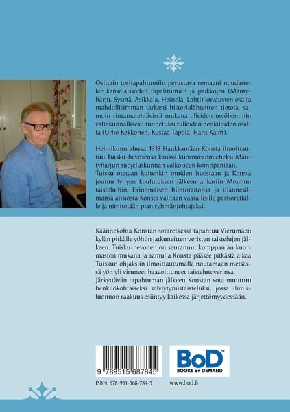 Romaani sijoittuu Savon rintaman tapahtumiin kansalaissodassa 1918. Talollisen poika Konsta Palomaa ilmoittautuu Tuisku-hevosineen Mäntyharjun suojeluskunnan kuormastomieheksi, mutta joutuukin vaarallisille partiointiretkille ja ankariin taisteluihin yleten ryhmänjohtajaksi.Vierumäen kylän verisen taistelun jälkeen Konsta pääsee vihdoin Tuiskun ohjaksiin, mutta pakenevat punapäälliköt pakottavat hänet kyytimiehekseen ja sota muuttuu Konstan henkilökohtaiseksi selviytymistaisteluksi, jossa ihmisluonnon raakuus esiintyy kaikessa järjettömyydessään. Osittain tositapahtumiin perustuva kertomus noudattelee tapahtumien ja paikkojen kuvausten osalta (Mäntyharju, Mouhu, Sysmä, Asikkala, Heinola, Lahti) mahdollisimman tarkasti historilähteitten tietoja, samoin rintamatehtävissä mukana olleiden, myöhemmin valtakunnallisesti tunnetuksi tulleiden henkilöiden osalta (Urho Kekkonen, Kustaa Tapola, Hans Kalm).