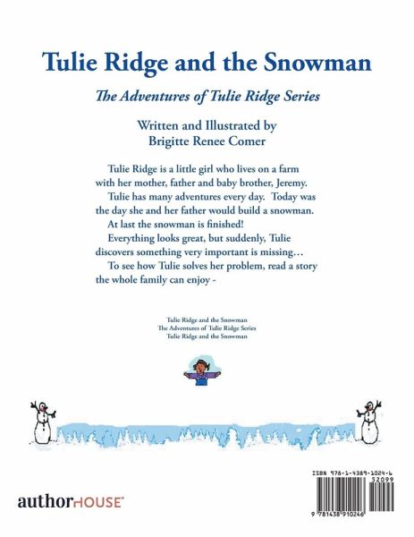 Tulie Ridge and the Snowman and The Adventures of Tulie Ridge is a series of books designed to encourage families to participate in active and positive things together. The old fashioned activities, pushes a child's mind and imagination into creativity, which is relative to the world today. Children learn that by sharing same interests with their parents, positive bonds and pleasant memories are formed which will last a lifetime and will be in-turned be passed down for generations to come. The series presents some fun ideas and activities which families can enjoy indoors and out. So pick up a copy today!
