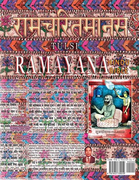 Ramcharitmanas, the Holy-Lake of the enactments of Lord God Rama is an Awadhi rendering of the Ramayana narrative. This Epic, which is religiously studied every day by millions across India, was composed by the medieval saint Tulsidas. In this edition we give a word-to-word Transliteration alongside the Original--making it easy for non-Hindi speakers to read this most Holy Scripture. An English Translation in natural communicative style follows group of verses. This is a special edition with the text formatted in two columns making it manageable in size. The Devnagri Font used is large and easy to read. The transliterated text is placed just below the original verse on every single line making it easy to read along. We also have the other edition:: Ramcharitmanas: Original Text with Transliteration that fits 322 pages (but has no translation) for those who wish to keep a second copy of this Holy Scripture in their worship room or altar. Ramcharitmanas, the Holy-Lake of the enactments of Lord God Rama is an Awadhi rendering of the Ramayana narrative. This Epic, which is religiously studied every day by millions of Hindus across the world, was composed by the medieval saint Tulsidas. In this edition we give a word-to-word Transliteration alongside the Original--making it easy for non-Hindi speakers to read this most Holy Scripture. An English Translation in natural communicative style follows group of verses. This is a special edition with the text formatted in two columns making it manageable in size. The Devnagri Font used is large and easy to read. The transliterated text is placed just below the original verse on every single line making it easy to read along. For those who wish to keep a second copy of this Holy Scripture in their worship room or altar, we also have these other editions: Ramcharitmanas: Original Text with Transliteration (ISBN: 9781945739002 ) Ramayana, Large: Hindi Edition, Large Font/paper size (ISBN: 9781945739064 ) Ramayana, Medium: Hindi Edition, Regular Font/paper size (ISBN: 9781945739125 ) Ramayana, Small: Hindi Edition, Small Font/paper size (ISBN: 9781945739088 )