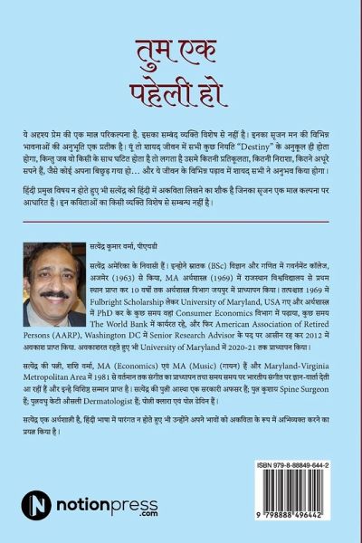 These poems are depiction of an invisible love. They have no apparent connection with any individual. All that happens in life is perhaps pre-destined but when it happens with someone, it appears as if all that is happening is so adverse. There is so much agony and pain that surrounds all aspects of life......so many pessimistic feelings of un-fulfilled dreams come to your mind ........as if someone you loved has departed. Almost everyone might have experienced such feelings at some point in their life. These poems are an emotional extension of those feelings. Satyendra is an Economist by profession; Hindi has never been his prime subject but he has attempted to express his emotions in AKIVITA (non-rhyming) format.