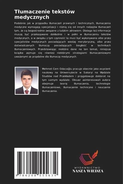 Podobnie jak w przypadku t¿umacze¿ prawnych i technicznych, t¿umaczenia medyczne wymagaj¿ specjalizacji i ró¿ni¿ si¿ od innych rodzajów t¿umacze¿ tym, ¿e s¿ bezpo¿rednio zwi¿zane z ludzkim zdrowiem. Dlatego te¿ informacje musz¿ by¿ przekazywane dok¿adnie i w pe¿ni w t¿umaczeniu tekstów medycznych, a w zwi¿zku z tym czynno¿¿ ta musi by¿ wykonywana albo przez specjalistów medycznych posiadaj¿cych wiedz¿ merytoryczn¿, albo przez do¿wiadczonych t¿umaczy posiadaj¿cych bieg¿o¿¿ w technikach t¿umaczeniowych. Przedstawiaj¿c niektóre dane na ten temat, niniejsza ksi¿¿ka zajmuje si¿ równie¿ niektórymi strategiami t¿umaczeniowymi uwäanymi za przydatne dla t¿umaczy medycznych.