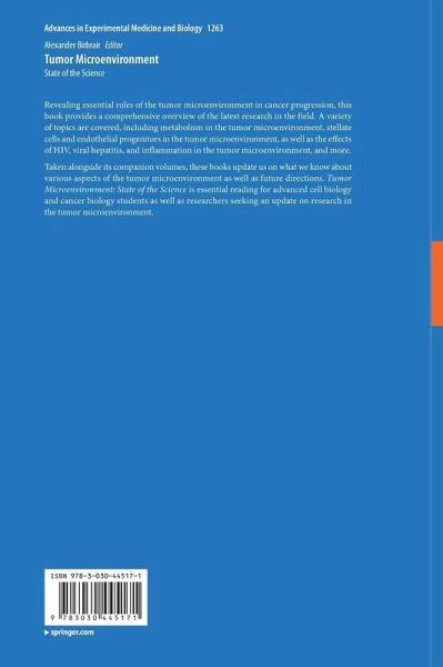 Metabolism in the tumor microenvironment.- Neutrophil Elastase and Neutrophil Extracellular Traps in the Tumor Microenvironment.- Viral hepatitis, inflammation, and tumour microenvironment.- Effects of HIV on the tumor microenvironment.- GLI2-mediated inflammation in the tumor microenvironment.- Stellate Cells in the Tumor Microenvironment.- Endothelial Progenitors in the Tumor microenvironment.- Chimeric antigen receptors for the tumour microenvironment.- Toll-Like Receptors (TLRs) in the Tumor Microenvironment (TME): A dragon-Like Weapon in a Non-Fantasy Game of Thrones.- Multiple dynamics in tumor microenvironment under radiotherapy.- Index.