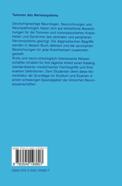 Deutschsprachige Neurologen, Neuropädiater und Neuropathologen haben sich auf einheitliche Bezeichnungen für die Tumoren und tumorassoziierten Krankheiten und Syndrome des zentralen und peripheren Nervensystems geeinigt. Diese diagnostischen Begriffe werden in diesem Buch definiert und die synonymen Bezeichnungen für jede Krankheitseinheit zusammengestellt. Der Arzt bekommt damit für seine tägliche Arbeit einen Katalog standardisierter medizinischer Fachbegriffe und ihre exakten Definitionen für die Praxis und die Klinik an die Hand. Dem angehenden Mediziner gibt diese Nomenklatur eine gute Grundlage für Studium und Examen in einem schwierigen Fachbereich der Neurologie.