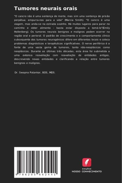 "O cancro não é uma sentença de morte, mas sim uma sentença de prisão perpétua; empurra-nos para a vida" (Marcia Smith). "O cancro é uma viagem, mas anda-se na estrada sozinho. Há muitos lugares para parar no caminho e obter alimento - basta estar disposto a tomá-lo"(Emily Hollenberg). Os tumores neurais benignos e malignos podem ocorrer na região oral e perioral. O padrão de crescimento e o comportamento clínico subsequente dos tumores neurogénicos difere em diferentes locais e coloca problemas diagnósticos e terapêuticos significativos. O nervo periférico é a fonte de uma vasta gama de tumores, tanto não-neoplásicos como neoplásicos. Durante as últimas três décadas, esta área foi submetida a uma extensa reavaliação com reavaliação de entidades antigas, descrevendo novas entidades e clarificando a relação entre tumores benignos e malignos.