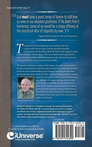 Tuning In to the God Frequency is an intimate look into a universally known prayer and the spiritual principles surrounding and dwelling within the Holy words taught by Jesus. Author Michael T. Abadie shares with us revelations that expanded his understanding and allowed him to experience the spiritual frequencies existing for all who seek to transmit and receive. This book is written in a matter-of-fact, down-to-earth, and sometimes humorous presentation, and the reader is asked to consider that Almighty God is far more understanding of our human flaws than He may have previously been given credit for. There is a very strong possibility that our Creator is not a grim-looking, gray-bearded, mean guy sitting in the clouds, waiting for us to mess up so He can swat us like a roach at the dinner table. To the contrary, God is found to be a literal part of our own essence existing in the Heavens, but at the same time extending His presence into the temple within that exists in the most intimate realm of our being.