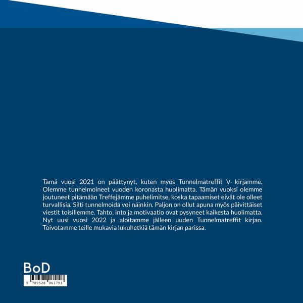 Tämä vuosi 2021 on päättynyt, kuten myös Tunnelmatreffit V-kirjamme. Olemme tunnelmoineet vuoden koronasta huolimatta. Tämän vuoksi olemme joutuneet pitämään Treffejämme puhelimitse, koska tapaamiset eivät ole olleet turvallisia. Silti tunnelmoida voi näinkin. Paljon on ollut apuna myös päivittäiset viestit toisillemme. Tahto, into ja motivaatio ovat pysyneet kaikesta huolimatta. Nyt uusi vuosi 2022 ja aloitamme jälleen uuden Tunnelmatreffit kirjan. Toivotamme teille mukavia lukuhetkiä tämän kirjan parissa.