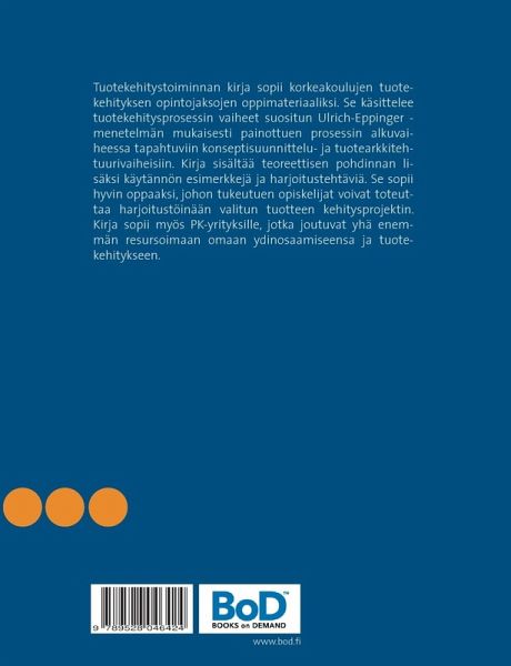 Tuotekehitystoiminnan kirja sopii korkeakoulujen tuotekehityksen opintojaksojen oppimateriaaliksi. Se käsittelee tuotekehitysprosessin vaiheet suositun Ulrich-Eppinger -menetelmän mukaisesti painottuen prosessin alkuvaiheessa tapahtuviin konseptisuunnittelu- ja tuotearkkitehtuurivaiheisiin. Kirja sisältää teoreettisen pohdinnan lisäksi käytännön esimerkkejä ja harjoitustehtäviä. Se sopii hyvin oppaaksi, johon tukeutuen opiskelijat voivat toteuttaa harjoitustöinään valitun tuotteen kehitysprojektin. Kirja sopii myös PK-yrityksille, jotka joutuvat yhä enemmän resursoimaan omaan ydinosaamiseensa ja tuotekehitykseen.
