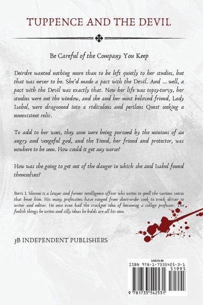 Be Careful of the Company You Keep Deirdre wanted nothing more than quietly to be left to her studies, but that was never to be. She'd made a pact with the Devil. And ... well, a pact with the Devil was exactly that. Now her life was topsy-turvy, her studies were out the window, and she and her most beloved friend, Lady Isabel, were dragooned into a ridiculous and perilous Quest seeking a nonexistent relic. To add to her woes, they soon were being pursued by the minions of an angry and vengeful god, and the Fiend, her friend and protector, was nowhere to be seen. How could it get any worse? How was she going to get out of the danger in which she and Isabel found themselves?