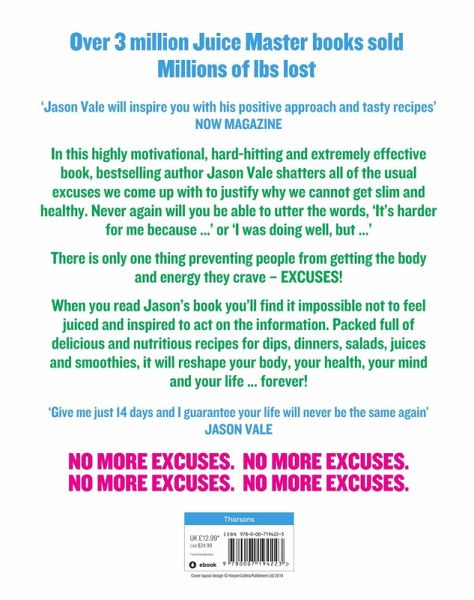 Jason Vale tackles the most common excuses we use to let ourselves off the hook: 'I can't because... I've got a slow metabolism... I don't have time...' and offers inspirational stories of people who have overcome giant obstacles to achieve their goal.