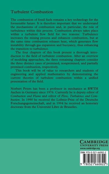 The combustion of fossil fuels remains a key technology for the foreseeable future. It is therefore important that we understand the mechanisms of combustion and, in particular, the role of turbulence within this process. Combustion always takes place within a turbulent flow field for two reasons: turbulence increases the mixing process and enhances combustion, but at the same time combustion releases heat which generates flow instability through buoyancy, thus enhancing the transition to turbulence. The four chapters of this book present a thorough introduction to the field of turbulent combustion. After an overview of modeling approaches, the three remaining chapters consider the three distinct cases of premixed, non-premixed, and partially premixed combustion, respectively. This book will be of value to researchers and students of engineering and applied mathematics by demonstrating the current theories of turbulent combustion within a unified presentation of the field.
