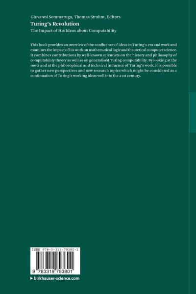 "There is a wide variety of content ... in this collection about Turing's ideas and what they meant for mathematics and computer science. ... People of all mathematical and computer science backgrounds will find something of interest in this collection. Educators that would like to go deeper into the meaning of computability and algorithms can find material that will set the stage for discussions and research papers on the meaning and impact of the life and work of Alan Turing." (Charles Ashbacher, MAA Reviews, maa.org, February, 2016)