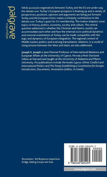 Introduction: Turkey at the Threshold of the EU; J.S.Joseph The Economic Dimension of Turkey's EU Membership: A Stock-taking Exercise at the Start of Accession Negotiations; M.Ugur Between Fedora and Fez: Modern Turkey's Troubled Road to Democratic Consolidation and the Pluralizing Role of Erdogan's Pro-Islam Government; S.Kotsovilis The EU Challenge: A View from the Turkish Grand National Assembly; N.G.Loizides & E.Ersin Relations between the State and Civil Society in Turkey: Does the EU Make a Difference?; W.Weber The Kurdish Problem in International Politics; M.M.Gunter The Europeanization of Turkey's Kurdish Question; N.Tocci The Greek Variable in EU-Turkish Relations; A.Kazamias Turkey's Quest for EU Membership and the Cyprus Problem; T.Bahcheli Security Implications of Turkey's March toward EU Membership; M.Kibaroglu The US and Turkey's Quest for EU Membership; O.Taspinar The Iraq War and the Troubled US-Turkish Alliance: Some Conclusions for Europe; O.Kayhan & D.Lindley