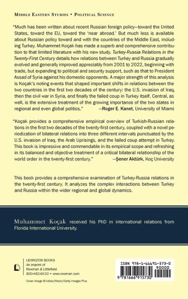 This book provides a comprehensive examination of Turkey-Russia Relations in the twenty-first century. It analyzes the complex interactions between Turkey and Russia within the wider regional and global dynamics.