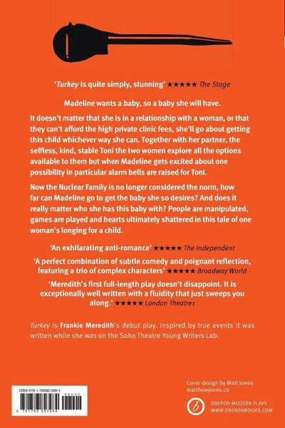 Madeline wants a baby, so a baby she will have. It doesn't matter that she is in a relationship with a woman, or that they can't afford the high private clinic fees, she'll go about getting this child whichever way she can. Together with her partner, the selfless, kind, stable Toni, the two women explore all the options available to them, but when Madeline gets excited about one possibility in particular alarm bells are raised for Toni. Now the Nuclear Family is no longer considered the norm, how far can Madeline go to get the baby she so desires? And does it really matter who she has this baby with? People are manipulated, games are played and hearts ultimately shattered in this tale of one woman's longing for a child.