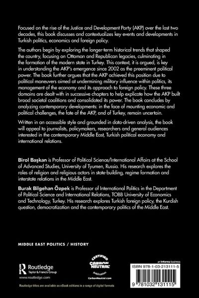 The authors begin by exploring the longer-term historical trends that shaped the country, focusing on Ottoman and Republican legacies, culminating in the formation of the modern state in Turkey. This context, it is argued, is key in understanding the AKP's emergence since 2002 as the preeminent political power. The book further argues that the AKP achieved this position due to political maneuvers aimed at undermining military influence within politics, its management of the economy and its approach to foreign policy. These three domains are dealt with in successive chapters to help explicate how the AKP built broad societal coalitions and consolidated its power. The book concludes by analyzing contemporary developments: in the face of mounting economic and political challenges, the fate of the AKP, and of Turkey, remain uncertain.