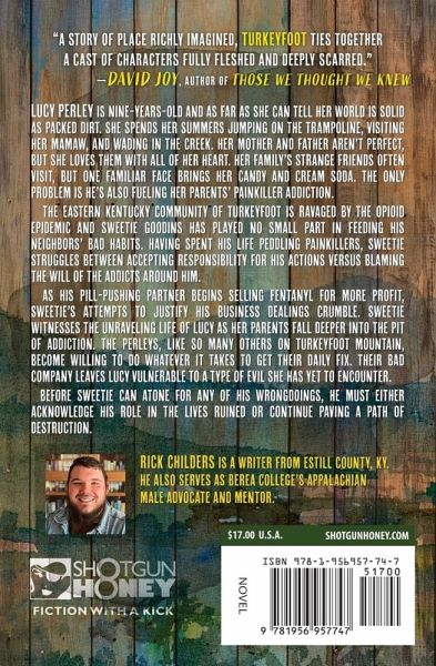 Lucy Perley is nine-years-old and as far as she can tell her world is solid as packed dirt. She spends her summers jumping on the trampoline, visiting her Mamaw, and wading in the creek. Her mother and father aren't perfect, but she loves them with all of her heart. Her family's strange friends often visit, but one familiar face brings her candy and cream soda. The only problem is he's also fueling her parents' painkiller addiction. The Eastern Kentucky community of Turkeyfoot is ravaged by the opioid epidemic and Sweetie Goodins has played no small part in feeding his neighbors' bad habits. Having spent his life peddling painkillers, Sweetie struggles between accepting responsibility for his actions versus blaming the will of the addicts around him. As his pill-pushing partner begins selling fentanyl for more profit, Sweetie's attempts to justify his business dealings crumble. Sweetie witnesses the unraveling life of Lucy as her parents fall deeper into the pit of addiction. The Perleys, like so many others on Turkeyfoot Mountain, become willing to do whatever it takes to get their daily fix. Their bad company leaves Lucy vulnerable to a type of evil she has yet to encounter. Before Sweetie can atone for any of his wrongdoings, he must either acknowledge his role in the lives ruined or continue paving a path of destruction. What folks are saying... "This harrowing debut is equal parts grit and empathy. Turkeyfoot is full of complex characters, pitch-perfect dialogue, and a sense of place so vibrant you can hear the birds singing, see the mist-shrouded hills, and smell the smoke of the off-brand cigarettes. Rick Childers is a writer who cares as deeply about language as he does about action, whose love for Appalachia shows clearly in his insistence on showing its joys, sorrows, and complications." -Silas House, New York Times Bestselling novelist and Kentucky Poet Laureate "A story of place richly imagined, Turkeyfoot ties together a cast of characters fully fleshed and deeply scarred. Where Childers shines is in his understanding of the intimacy demanded by such places. Here, no one is ever more than one person removed. All are linked like bloodkin." -David Joy, author of Those We Thought We Knew, winner of the Willie Morris Award and the Thomas Wolfe Literary Award "Rick Childers brings to Turkeyfoot¿ an ear for language, an eye for detail, and a feel for the structure of story that will keep the human face of the opioid epidemic before us." -Michael Henson, author of Maggie Boylan