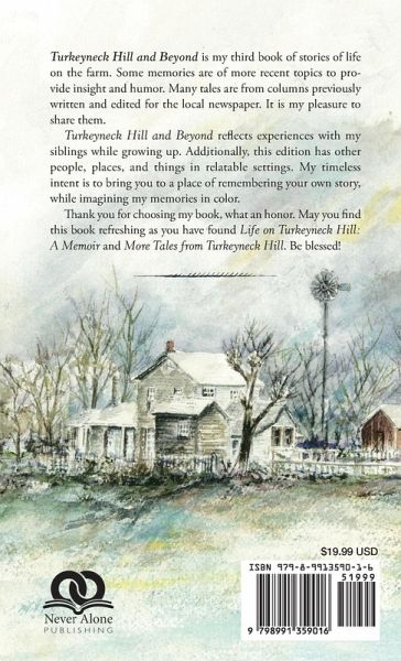 Turkeyneck Hill and Beyond is the third book of stories from not only waxing nostalgia, but some are more recent interesting topics which may tickle funny bones. Many features are from columns previously written for the local newspaper in Martinsville, Indiana. All have been edited or updated to provide clarity. Countless people enjoy viewing photos related to the narratives and this book will not disappoint you. It is my pleasure to share these tales. Turkeyneck Hill and Beyond includes experiences from the farm with my siblings while growing up. More importantly, it has other people, places, and things in relatable settings to enjoy. My timeless intent is to bring you to a place of remembering your own story, while imagining my story in color as you wolf down the pages. Thank you from the bottom of my heart for choosing my book to read, you honor me. When you are finished, I hope your exhale is breathe which gives you peace and a smile. Perhaps you will be reminded of some other soul who will be pleased to journey the path of Turkeyneck Hill and Beyond. May you find this book as refreshing as you have found Life on Turkeyneck Hill: A Memoir and More Tales from Turkeyneck Hill.
