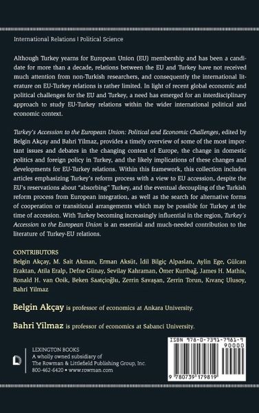 Part 1. A General Outlook on Turkey-EU Relations Chapter 1. Turkey-EU Relations from the 1960s to 2010: A Critical Overview by Beken Saatçioglu Chapter 2. Europeanization of Turkish Politics and Policies: Past, Present, and Future by Atila Eralp and Zerrin Torun Chapter 3. The Credibility of EU Human Rights Conditionality: Turkey's Case by Zerrin Savasan Part 2. Economic Relations: Win-win Process Chapter 4. Turkey's Accession to the European Union: Temporary and Permanent Derogations from the EU's Economic Acquis? by Ronald van Ooik and James H. Mathis Chapter 5. The Constraints in the Economic Integration of Turkey into the European Union by Belgin Akçay Chapter 6. Dynamics of the European Union's Trade Strategy and Its Imperatives on Turkish Trade Policy Prospects for a Functioning Customs Union by M. Sait Akman Chapter 7. EU Accession and Central Bank Reform in Turkey by Aylin Ege and Erman Aksüt Chapter 8. Turkish Agriculture in Case of the EU Membership or Non-Member Status by Gülcan Eraktan Chapter 9. Turkey's External Economic Relations: Does the MENA Region Steal the EU's Role? by Idil Bilgiç Alpaslan Part 3. Foreign Policy of Turkey: Looking West and Going East Chapter 10. Turkey's Recent Foreign Policy Activism in Its Neighborhood vs. Its EU Membership Goal: How Compliant Are Turkey's Regional Ambitions with EU Foreign Policy? by Ömer Karabag Chapter 11. The EU Impact on Turkish Foreign Policy towards the Middle East by Defne Günay Chapter 12. Europeanization's Time Constraint: The Case of Cyprus by Kivanç Ulusoy Chapter 13. Incomplete Peace: Relations between Turkey and Greece by Bahri Yilmaz Chapter 14. The Future of European Integration Process and Turkey by Sevilay Kahraman