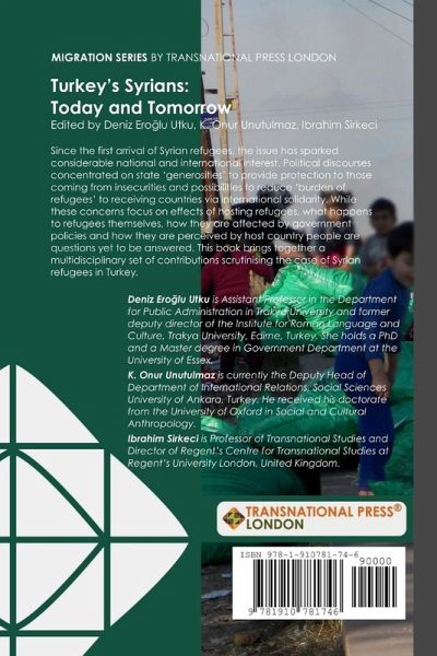 Turkey's Syrians: Today and Tomorrow, edited by Deniz Erölu Utku, K. Onur Unutulmaz, Ibrahim Sirkeci is published by Transnational Press London. The book presents a selection of papers drawing on recent research on Syrian refugees in Turkey. Since the first arrival of Syrian refugees, the issue has sparked considerable national and international interest. Political discourses concentrated on state 'generosities' to provide protection to those coming from insecurities and possibilities to reduce 'burden of refugees' to receiving countries via international solidarity. While these concerns focus on effects of hosting refugees, what happens to refugees themselves, how they are affected by government policies and how they are perceived by host country people are questions yet to be answered. This book brings together a multidisciplinary set of contributions scrutinising the case of Syrian refugees in Turkey.