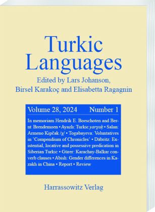 The journal Turkic Languages is devoted to linguistic Turcology. It addresses descriptive, comparative, synchronic, diachronic, theoretical, and methodological problems of the study of Turkic languages including questions of genetic, typological and areal relations, linguistic variation, and language acquisition. The journal aims at presenting work of current interest on a variety of subjects, and thus welcomes contributions on all aspects of Turkic language studies. It contains articles, review articles, reviews, discussions, reports, and surveys of publications.The journal uses a double blind review system in selecting articles for publication. The preferred language of publication is English.From the contents (altogether 11 contributions):Özlem Ayazli:, A proposal for the etymology of Turkic yar a Musa Salan, Remarks on Armeno-Kipchak ' ' / /Chris Lasse Däbritz, Existential, locative and possessive predication in Siberian Turkic languages: Co-expression, generalisation and spreading patternsAsli Gürer, Karachay-Balkar converb clausesAynur Abish, Gender differences in the use of evidentials in Kazakh in China. A corpus-based study
