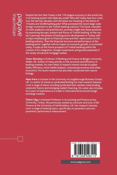 In light of Turkey's EU bid and the successful IMF-led disinflation program, this book explores the evolution and performance of the Turkish banking sector. Analyzing the repercussions of overall economic structure, financial crises and political instability on its financial sector, it scrutinizes the prospects for the future of banking sectors.