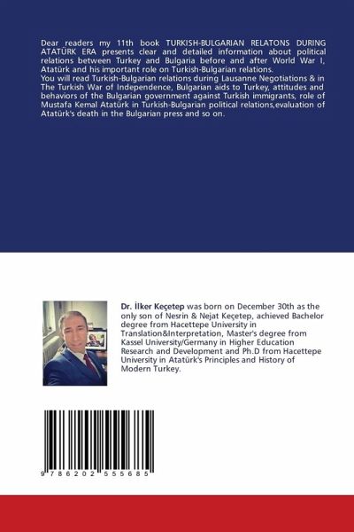 Dear readers my 11th book TURKISH-BULGARIAN RELATONS DURING ATATÜRK ERA presents clear and detailed information about political relations between Turkey and Bulgaria before and after World War I, Atatürk and his important role on Turkish-Bulgarian relations.You will read Turkish-Bulgarian relations during Lausanne Negotiations & in The Turkish War of Independence, Bulgarian aids to Turkey, attitudes and behaviors of the Bulgarian government against Turkish immigrants, role of Mustafa Kemal Atatürk in Turkish-Bulgarian political relations,evaluation of Atatürk's death in the Bulgarian press and so on.