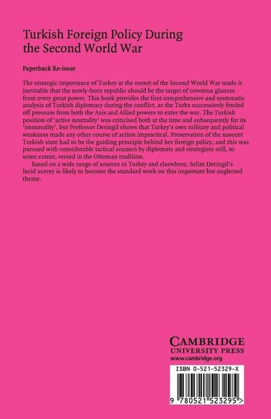 The strategic importance of Turkey at the outset of the Second World War made it inevitable that the newly-born republic should be the target of covetous glances from every great power. This book provides the first comprehensive and systematic analysis of Turkish diplomacy during the conflict, as the Turks successively fended off pressure from both the Axis and Allied powers to enter the war. The Turkish position of 'active neutrality' was criticised both at the time and subsequently for its 'immorality', but Professor Deringil shows that Turkey's own military and political weakness made any other course of action impractical. Preservation of the nascent Turkish state had to be the guiding principle behind her foreign policy, and this was pursued with considerable tactical acumen by diplomats and strategists still, to some extent, versed in the Ottoman tradition.