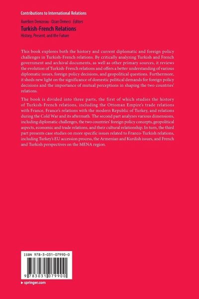 This book explores both the history and current diplomatic and foreign policy challenges in Turkish-French relations. By critically analyzing Turkish and French government and archival documents, as well as other primary sources, it reviews the evolution of Turkish-French relations and offers a better understanding of various diplomatic issues, foreign policy decisions, and geopolitical questions. Furthermore, it sheds new light on the significance of domestic political demands for foreign policy decisions and the importance of mutual perceptions in shaping the two countries' relations.