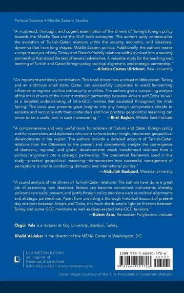 Introduction: Turkish-Qatari Relations from the Ottomans to the Present Chapter I: A Brief History Ottoman-Qatari Relations Chapter II: Evolving Dynamics of Turkish Foreign Policy toward the Arab Middle East (1923-1980) Chapter III: Evolving Dynamics of Turkish-Gulf Arab Relations (1980-2002) Chapter IV: Place of Identity and Interests in the Evolution of the Turkish-Qatari Relations (2002-2013) Chapter V: Regional Dynamics of Turkey-Qatar Relations: Foreign Policy Approaches, Tools, and Convergences (2002-2011) Chapter VI: Regional Dynamics Continued: Arab Spring, Changing Regional Dynamics, Geopolitical Aspirations, and the Turkish-Qatari Political Alignment (2011-2016) Chapter VII: Qatari Blockade: From Political Alignment to Strategic Partners (2017-2022) Conclusion: Future Outlook of Turkish-Qatari Relations
