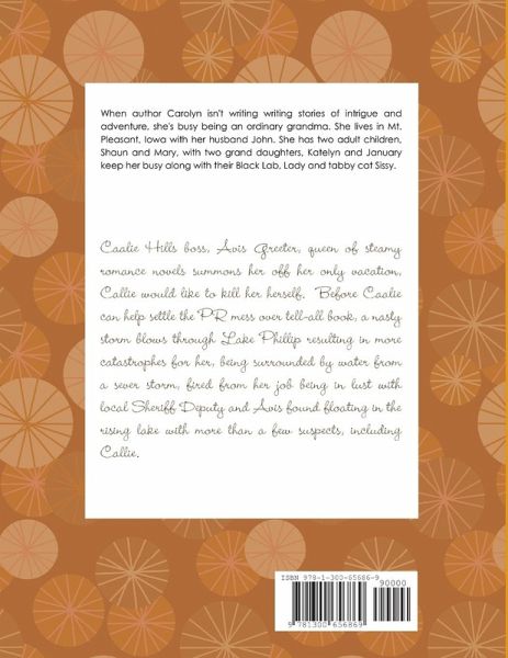 When Callie Hill's boss, Avis Greeter, queen of steamy romance novels immediately summons her from her first real vacation in five years, Callie would like to throttle her herself. Upon arrival in Avis's home town of Lake Phillip, Iowa, where she went on retreat, Callie soon discovers Avis wasn't working on another best seller, instead she intended all along to write a tell-all memoir book revealing her vivacious and sensual escapades. Later word leaks about the new project which has locals in uproar as many were included in her back story of how she gradually made it to the best seller list. Before Callie can help settle the PR mess, she's fired, in lust with Deputy Sheriff Max Hayden who arrested her the first night she was there and took refuge from a nasty storm in his family's cabin. The small lake community is surrounded by flood waters following the storm. With no way out other than helicopter, Avis is found floating in the rising waters with Callie among the suspect list.
