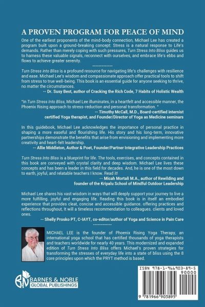 A PROVEN PROGRAM FOR PEACE OF MIND One of the earliest proponents of the mind-body connection, Michael Lee has created a program built upon a ground-breaking concept: Stress is a natural response to Life's demands. Rather than merely coping with such pressures, Turn Stress Into Bliss guides us to harness these valuable signals, reconnect with ourselves, and embrace life's ebbs and flows to achieve greater serenity.