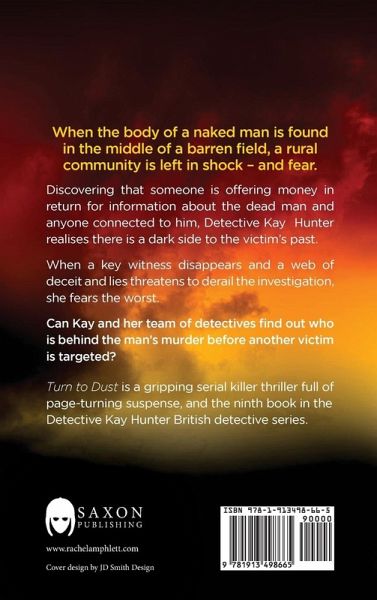 When the body of a naked man is found in the middle of a barren field, a rural community is left in shock - and fear. Discovering that someone is offering money in return for information about the dead man and anyone connected to him, Detective Kay Hunter realises there is a dark side to the victim's past. When a key witness disappears and a web of deceit and lies threatens to derail the investigation, she fears the worst. Can Kay and her team of detectives find out who is behind the man's murder before another victim is targeted? Turn to Dust is the ninth book in the Detective Kay Hunter series by USA Today bestselling author Rachel Amphlett, and perfect for readers who love fast-paced murder mysteries.