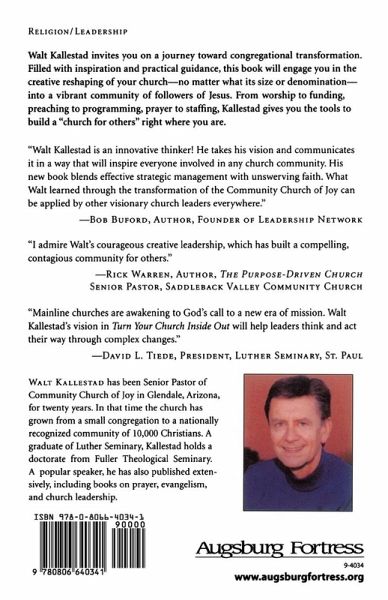 A primer for reinvigorating church lifeDrawing on his experience as pastor of one of the largest and fastest-growing congregations in America, Walt Kallestad envisions the church as a mission centercommitted to reaching out to others through evangelism and service. Kallestad combines timeless biblical principles with the latest leadership and communication skills to show how pastors and lay leaders can: develop a dynamic congregation open to change motivate staff and members for innovation and creativity make a positive difference in their communitiesPastors and lay leaders alike will discover inspiring ideas and practical tools to enable them to move forward with courage, commitment, and creativity.