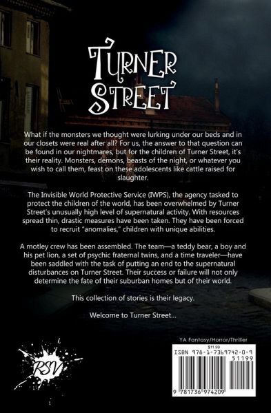 What if the monsters we thought were lurking under our beds and in our closets were real after all? For us, the answer to that question can be found in our nightmares, but for the children of Turner Street, it's their reality. Monsters, demons, beasts of the night, or whatever you wish to call them, feast on these adolescents like cattle raised for slaughter. The Invisible World Protective Service (IWPS), the agency tasked to protect the children of the world, has been overwhelmed by Turner Street's unusually high level of supernatural activity. With resources spread thin, drastic measures have been taken. They have been forced to recruit "anomalies," children with unique abilities. A motley crew has been assembled. The team-a teddy bear, a boy and his pet lion, a set of psychic fraternal twins, and a time traveler-have been saddled with the task of putting an end to the supernatural disturbances on Turner Street. Their success or failure will not only determine the fate of their suburban homes but of their world. This collection of stories is their legacy. Welcome to Turner Street...